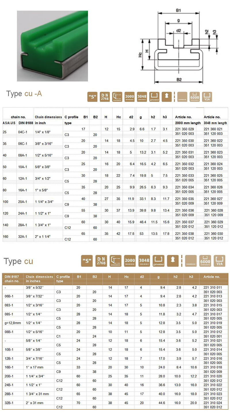 名稱:CU超高分子量聚乙烯鏈條導(dǎo)軌